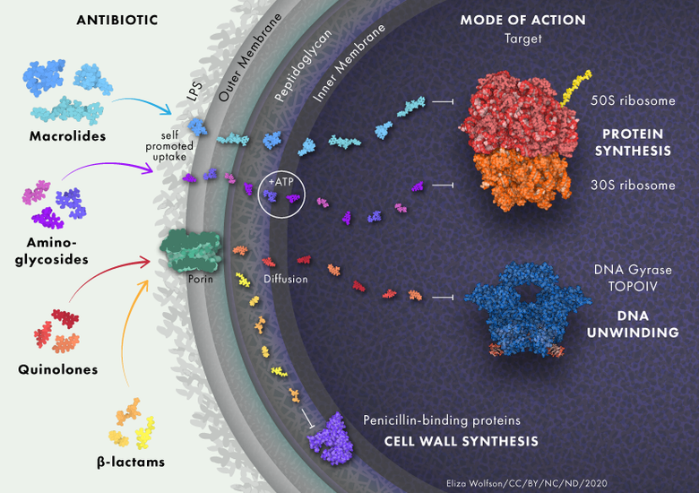 These figures were commissioned by Daniel Neill‘s group at University of Liverpool for a review on antimicrobial resistance in Pseudomonas aeruginosa, published in Frontiers in Cellular and Infection MicrobiologyI’m always trying to keep an eye on different visualisation software in development, and this was created using 3D renders from Protein Imager.